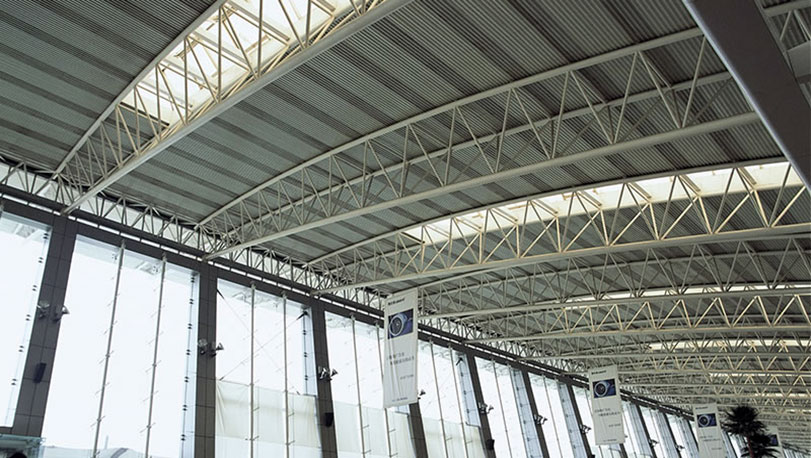 咸陽國際機(jī)場位于中國內(nèi)陸中心,是西北地區(qū)最大的空中交通樞紐。2009年開始擴(kuò)建,目前有2座候機(jī)樓,共10萬平方米,外墻面及外屋面都采用了寶鋼鍍鋁鋅彩涂鋼板。外屋面采用白灰PE鋼板,牌號為TDC51D+AZ,鋁鋅重量為150克/平方米。