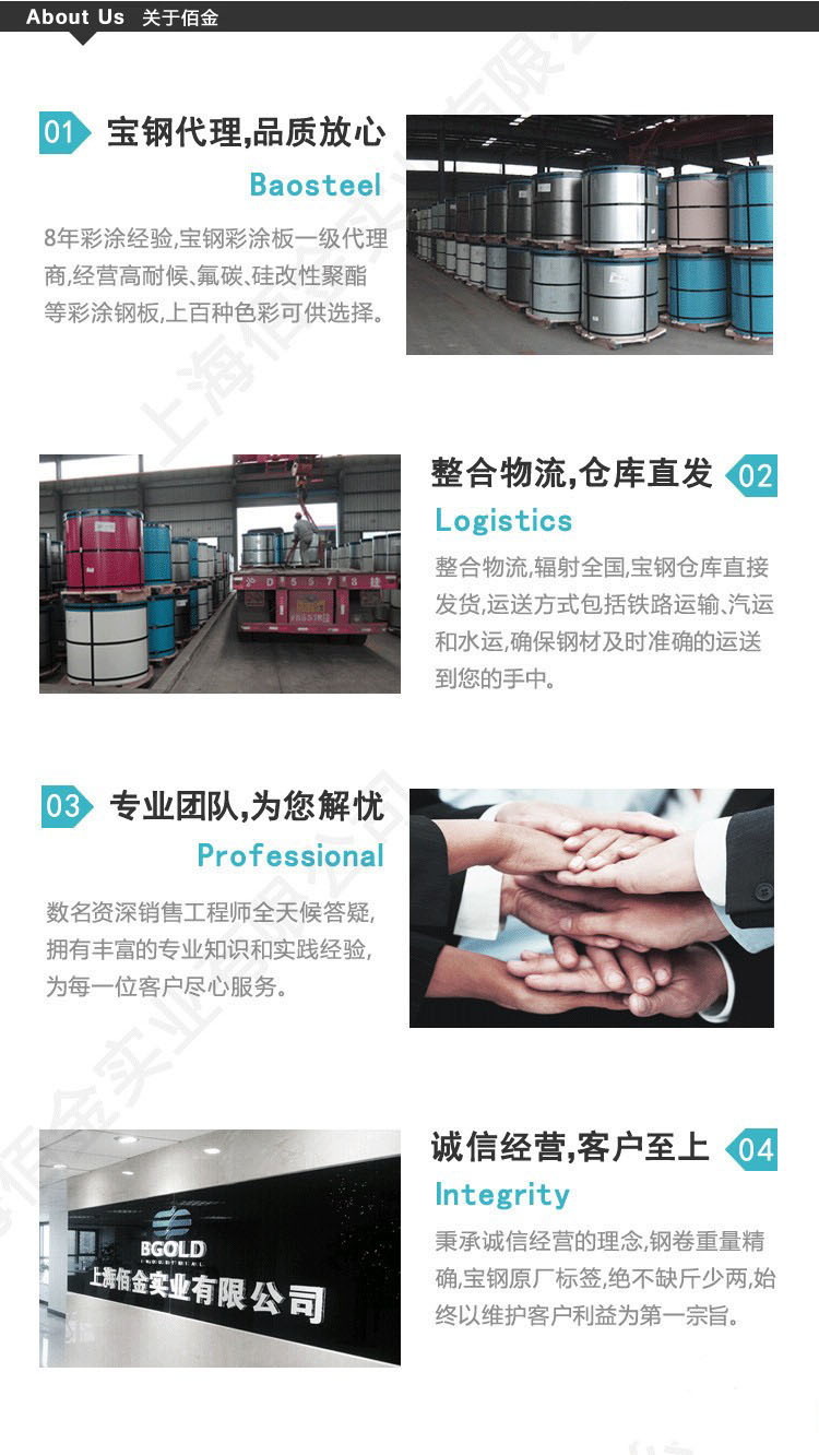 2016年公司在湖北·武漢成立了上海佰金實(shí)業(yè)有限公司華中(武漢)銷售中心,佰金武漢銷售中心位于武漢經(jīng)濟(jì)開發(fā)區(qū)東風(fēng)三路1號(hào),主要產(chǎn)品為:金屬建筑屋面、墻面材料-寶鋼、寶鋼黃石彩涂板,鍍鋁鋅本色(光)板,是華中地區(qū)最專業(yè)的金屬圍護(hù)系統(tǒng)材料供應(yīng)商。我們擁有一批專業(yè)的金屬建筑材料銷售顧問(wèn),為您提供質(zhì)量最優(yōu),性價(jià)比最高,最適合中部環(huán)境的選材方案!